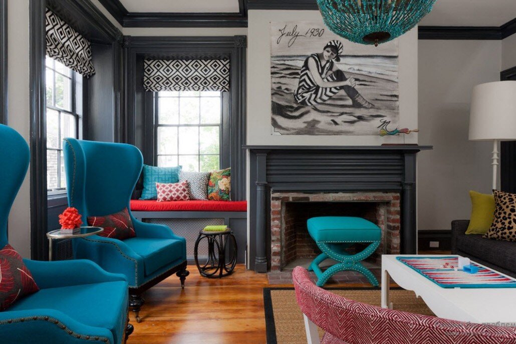 Бирюзовые акценты прекрасно подойдут к элегантной черно-белой классике, к такой модной эклектике, в деревенский и винтажный стиль и вообще прекрасно впишется в любой современный интерьер. Достаточно повторить пару бирюзовых акцентов в нескольких местах комнаты и они прекрасно добавят яркости даже самой унылой обстановке.