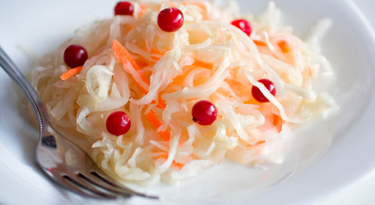 Наверное, каждому, известно, что в квашеной капусте содержится большое количество витаминов и минералов, которые хорошо усваиваются человеческим организмом. И самое главное, что заквасит капусту на зиму, может любой. Проще всего сделать это по традиционному рецепту. Лучше всего заквасить капусту в эмалированной кастрюле. Например, большая кастрюля или ведро будет в самый раз, но и стеклянные 3-х литровые банки тоже подойдут. Итак, на 10 кг белокочанной капусты, необходимы следующие Ингредиенты: Соль — 250 гр. Морковь — 500 гр., нужна морковь, порезать тонкой соломкой Нарезанные дольками яблоки — 1 кг Брусника — 200 гр. И еще можно положить,если любите ,немного тмина Порядок закваски: Капусту мелко шинкуем и равномерно перемешиваем с солью, морковкой и другими добавками. Затем, уложиваем всю смесь в посуду для закваски, при этом значительно уплотнив. Верхушку желательно накрыть капустными листьями. Они защитят верхний слой от порчи. Далее, капусту накрываем чистым куском ткан