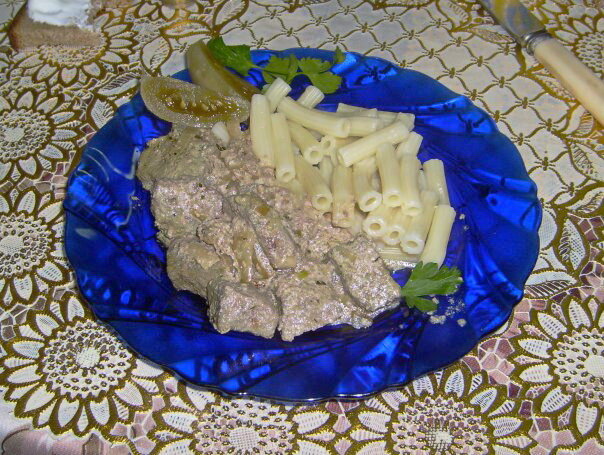 Люблю субпродукты. Недорого, быстро, разнообразно. Рецептов множество, можно экспериментировать и создать блюдо на будни и на праздник. В этот раз делала говяжью печень в сметане. Продукты на 2 порции:* * Печень, кроме оладушек и паштета, всегда стараюсь готовить на разок. Так вкуснее. Порядок приготовления: 1. Печень размораживаю не до конца, нарезаю на средние кусочки квадратной формы. 2. Крупную луковицу нарезаю перьями или полукольцами, как удобно, и пассирую на растительном масле. 3. Куски печени обваливаю в муке без фанатизма и отправляю на сковороду к луку. Обжариваю печенку сначала несколько минут без крышки, следя за тем, чтобы появилась корочка румяная, но не пригорело. Помешала и закрыла крышкой на несколько минут, пусть еще печень так пожарится. 4. Заливаю печенку сметаной, добавляю соль, зелень, приправы, закрываю крышку и туши минут 5. Большего времени не надо. Печень в сметане готова. На гарнир подойдут рис, макароны, картофельное или овощное пюре. Еще рецепт и полезная