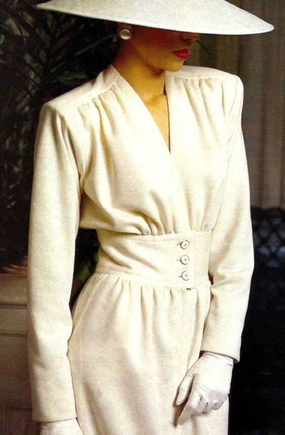 Итак, сегодня пост для любительниц высокой моды! Опять же, вспоминая СССР, имя этого дизайнера - Yves Saint Laurent - наши женщины произносили с придыханием, и - нежно собирая вырезки из журналов "Бурда Моден". А в Европе 1980-е шли бурно, буйно и раскидисто! Шикарные силуэты и сногсшибательные модели будоражили умы женщин планеты! Вот например, такие: Потрясающий белый комплект с огромной шляпой! И кстати, до сих пор актуальный. 1983 год, показ Vogue : Рисунки Энди Уорхола на стене, фотограф - Хельмут Ньютон. И да, платье от Yves Saint Laurent , 1985г. : Еще одно вечернее платье от Yves Saint Laurent , с потрясающими фееричными рукавами: Это платье, сшитое полностью из шёлковой тафты, и, естественно, от Yves Saint Laurent, уже стало достоянием истории и хранится в музее моды. Вот он - 1986 год, модель в платье от Yves Saint Laurent в баре. Обратите внимание на прическу - она просто космос! И напоследок ещё пара-тройка платьев от именитого француза! Итак! Бархатно