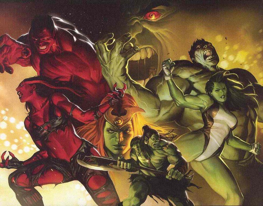 Привет тебе, Любитель или Любительница ТОПов и Комиксов. Мы уже показали 10 Версий Халка, Человека-Паука и Тора. Сегодня же рассмотрим 10 Гамма-Мутантов, которые получили свои способности благодаря Гамма-Излучению. 10. Халк Тут, я думаю, можно долго не задерживаться. Единственное, что отличает самого Халка от остальных Гамма-Мутантов - это его злость. Брюс может превращаться в Халка если разозлится и в этом состоянии он теряет умственные способности. Остальные же сохраняют свой Разум. 9. Она-Халк Или Женщина Халк. Дженнифер Уолтерс. Является кузиной Брюса. Работала юристом и имела дела с плохими парнями. Её ранили и для выживания ей потребовалось переливание крови. Естественно кровь взяли у Беннера. 8. Ралк Генерал Таддеус Росс или Громовержец. Изначально был врагом Брюса, но позже стал союзником. Его отличительная черта - это кровь, по свойствам напоминающая Лаву, и выделение большого количества тепла во время Злости и Ярости. 7. Гарпия Или Красная Женщина-Халк или Красная Она-Халк ил