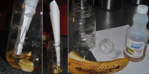 Вы знали, что банановая кожура очень полезна нашим растениям так как содержит в себе калий и фосфор, который так важен для роста и развития. Достаточно закопать кожуру под томаты или перцы, и вы увидите результат, полезности этого удобрения. А что вы скажите если я вас познакомлю с 5 способами которые вам пригодиться на вашем дачном участке. Вы знали, что банановая кожура очень полезна нашим растениям так как содержит в себе калий и фосфор, который так важен для роста и развития. Достаточно закопать кожуру под томаты или перцы, и вы увидите результат, полезности этого удобрения. А что вы скажите если я вас познакомлю с 5 способами которые вам пригодиться на вашем дачном участке. 1 способ назовём - "аромат". Давно известно, что аромат банана манит мух и насекомых, и зная это, мы можем сделать ловушку для этих вредителей. Берём литровую банку или какую либо другую ёмкость с крышкой, кладём банановую кожуру,( 2 кусочка) наливаем грамм 50 яблочного уксусу. Из бумаги А4 формата свора