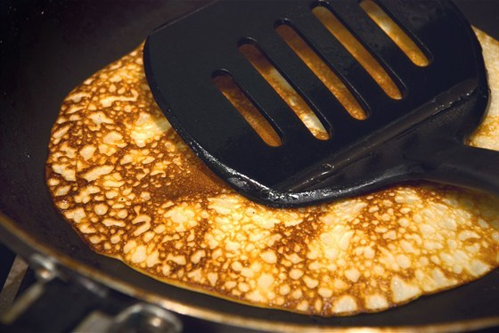 Пшеничная мука 1 стакан Кефир 1 стакан Вода 1 стакан Яйцо куриное 2 штуки Соль ½ чайной ложки Сода на кончике ножа Сахар 1 столовая ложка Растительное масло 2 столовые ложки ИНСТРУКЦИЯ ПРИГОТОВЛЕНИЯ 1. Взбить яйца до появления легкой пены, добавить соль. 2. Влить в яйца стакан кипятка и продолжать взбивать. 3. Затем добавьте стакан кефира. 4. Муку просеять, смешать с содой и по ложке добавить в жидкость. Тщательно размешать, чтобы не образовались комки. Добавить ложку сахара и растительное масло. 5. Взять любимую сковороду для блинов и выпекать на ней тонкие блинчики. Обжаривать с двух сторон до красивого золотисто-коричневого цвета.
