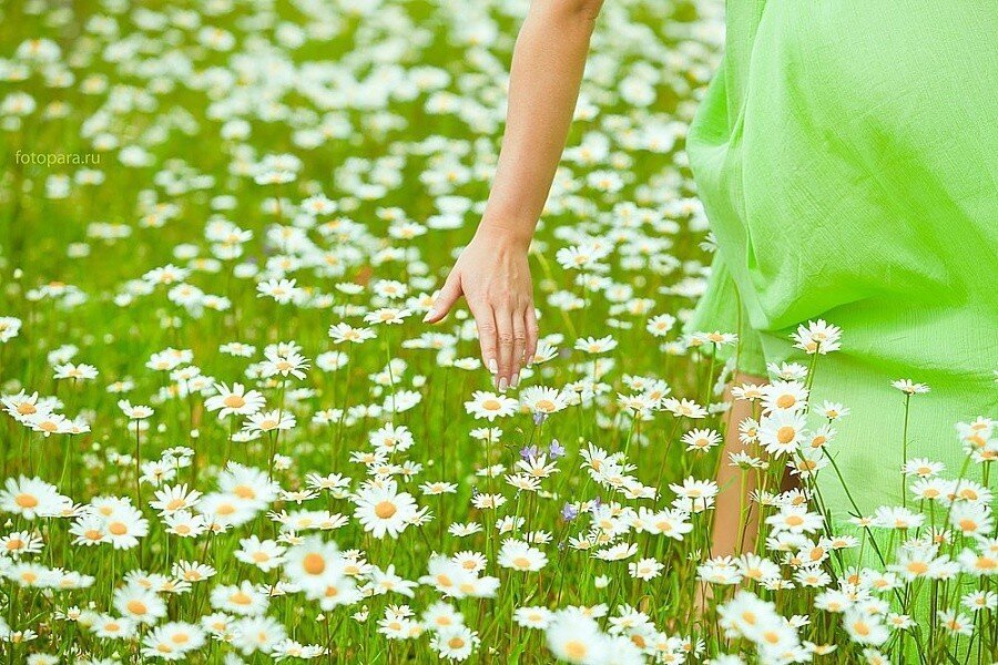 И чтобы ромашки по платью вразброс,