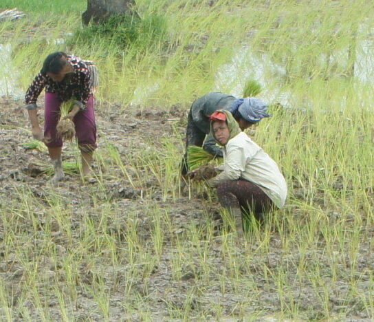 Рис можно сажать весной или осенью. Сделайте длинные борозды или ямки среднего размера. Наполните их водой. Поместите равномерно семена. Закройте их слоем земли. Еще раз полейте.