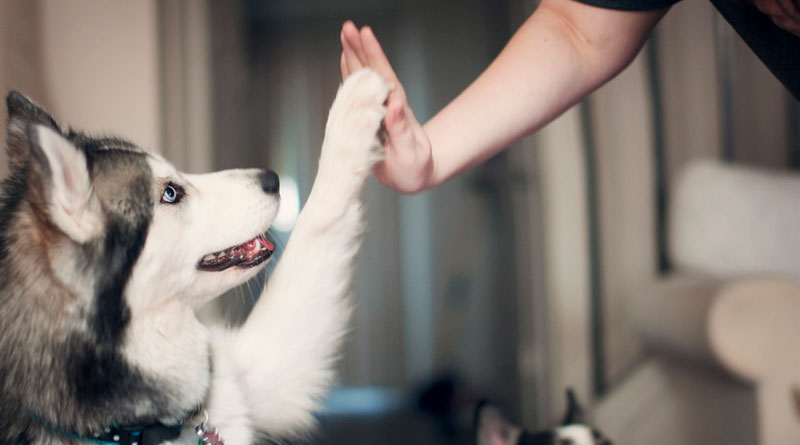 В этом упражнении собака должна коснуться лапой вашей ладони, поднятой в жесте «Дай пять». Чтобы научить собаку давать пять, зажмите кусочек лакомства или игрушку между пальцами и поднимите руку на такую высоту, чтобы собака могла до нее дотянуться лапой. Если у вас небольшая собака, то держите руку достаточно низко, если собака крупная, то руку, наоборот, стоит поднять. Если собака будет пытаться достать лакомство зубами, просто игнорируйте такое поведение. Дождитесь, пока она начнет скрести лапой по ладони, после чего поощрите ее. Произносить команду «Дай пять» следует каждый раз, когда собака ведет себя верно и старается дотронуться до вашей ладони. Видео: еще один вариант обучения команде «Дай пять» Варианты команды «Дай пять» Источник: https://dogtricks.ru/trjuki/daj-pjat
