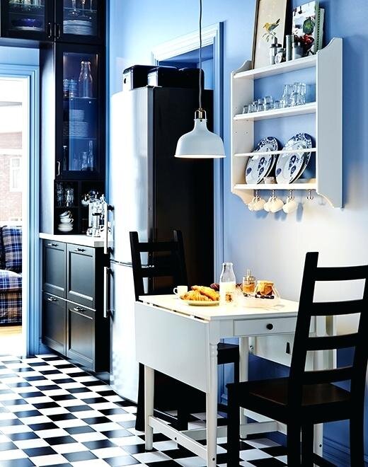 Добрый день дорогие друзья! Маленькая кухня не предполагает отсутствие стола. Вы всегда мечтали о медленном пробуждении, потягивая кофе на кухне, но правда в том, что Ваша мебель едва ли помещается в кухонной зоне, не говоря уже о столе. Не отчаивайтесь! Сегодня я выбрал 7 альтернативных идей, которые помогут Вам поместить стол в небольшом пространстве. Немного творческого подхода и правильная идея превратит даже самую маленькую и тесную кухню в уютное, функциональное пространство с маленьким столиком. Передвижные, складные и многофункциональные, иногда в виде полочки прикрученной к стене – это лишь часть решений способных удовлетворить требования даже самых придирчивых домохозяек. 1. Как в бистро. Попрощайтесь на некоторое время с большими деревянными столами и попробуйте использовать в быту небольшой круглый столик с двумя стульями. Вас не будет покидать ощущение, как будто отдыхаете в парижском кафе, и вдобавок, приобретете ценное пространство, чтобы Ваша кухня не смотрелась перепо