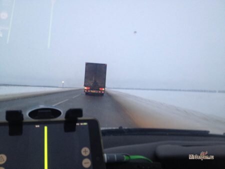 Чуть ли не половина всей дороги проходила в условиях приближающейся к нулевой видимости - шла пурга.
