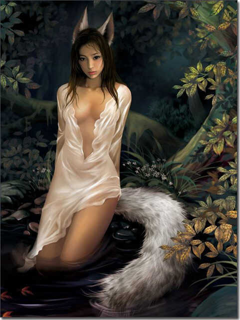 Все до капельки выпил — захмелел, податливым стал, как глина. Тут Эр-ни и вытащила у него изо рта белую жемчужину. Старец не заметил, как лисом обернулся. Эр-ни взяла жемчужину, бросила ее в чашку с водой и велела Да-чжуану выпить. Забулькало у юноши в животе и болеть перестало.