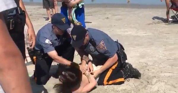 На одном из пляжей США полицейские обратили внимание на девушку, отдыхавшую с ребенком и своим другом. Стражам порядка не понравилось, что девушка пила пиво и они поинтересовались возрастом Как пишут местные СМИ, после непродолжительного диалога офицеры захотели арестовать ее, несмотря на присутствие рядом маленькой дочери. Один из них попытался заковать девушку в наручники, и когда она упала, схватил и принялся душить, сопровождая свои действия ударами по голове. Против копов завели дело.