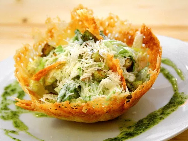 Приготовление салата Цезарь с соусом песто: