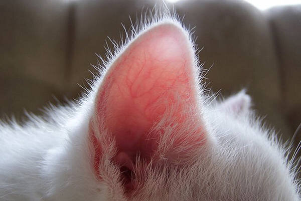 Если у кошки на ушах достаточно густая и длинная шерсть, то заметить их обморожение бывает не так уж и просто. Первыми признаками этого неприятного явления можно считать странное поведение кошки, которая вернулась домой с прогулки около 30 минут назад. Дело в том, что по мере отогревания ушей их отмороженные участки начинают не только чесаться, но и сильно болеть. Кошка, в свою очередь, может начать тереться ушами об мебель, пытается почесать их лапами и начинает жалобно мяукать. А как только хозяин попытается потрогать животное за уши, она способна даже проявить агрессию. Если ваша кошка действительно отморозила себе уши, кожа на них будет казаться затвердевшей и очень холодной. Ушки будут синеватого оттенка, который постепенно сменится ярко-красным либо багровым. Обратите внимание, что чем краснее участок кожи, тем больнее будет прикосновение к нему. Поэтому прикасаться к ушам кошки необходимо очень и очень аккуратно. В том случае, если обморожение достаточно сильное, на некоторых