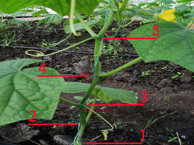 Нужно не пропустить сей важный этап в развитии овоща. Для этого теплицы оснащаются шпалерами, следует также использовать прищипку. Стебель растения в длину должен быть от 0,5 до 3 метров. Куст формируется при появлении восьмого листа. Уже в самом начале в первых трех пазухах нужно прищипывать цветки.