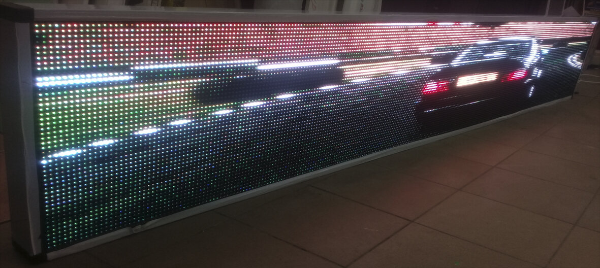 Полноцветные бегущие строки имеют возможность выводить на экран полноценную видеоинформацию. Это выглядит очень эффектно и респектабельно, а потому - отлично привлекает внимание окружающих. В них также используются светодиоды повышенной яркости (до 8000 Кд/м2), они способны отображать 16,7млн. цветов. При этом, цена 1 м2 видео-вывески заметно ниже 1м2 экрана. Это обусловлено тем, что светодиодные экраны комплектуются дорогостоящими видеокартами (и не одной), в комплекте с каждым экраном идет компьютер или ноутбук, постоянно управляющий выводом информации. Данное оборудование предоставляет экрану большое количество таких функций, которые просто не нужны для видео-вывески. (например режим прямой трансляции изображения с видеокамеры и т.д.) Видео-вывеска же, в отличии от экрана, комплектуется просто одним мощным контроллером. При этом, можно уверенно воспроизводить полноцветное изображение, такого же качества как на видео-экране, а так же возможности воспроизведение звука.