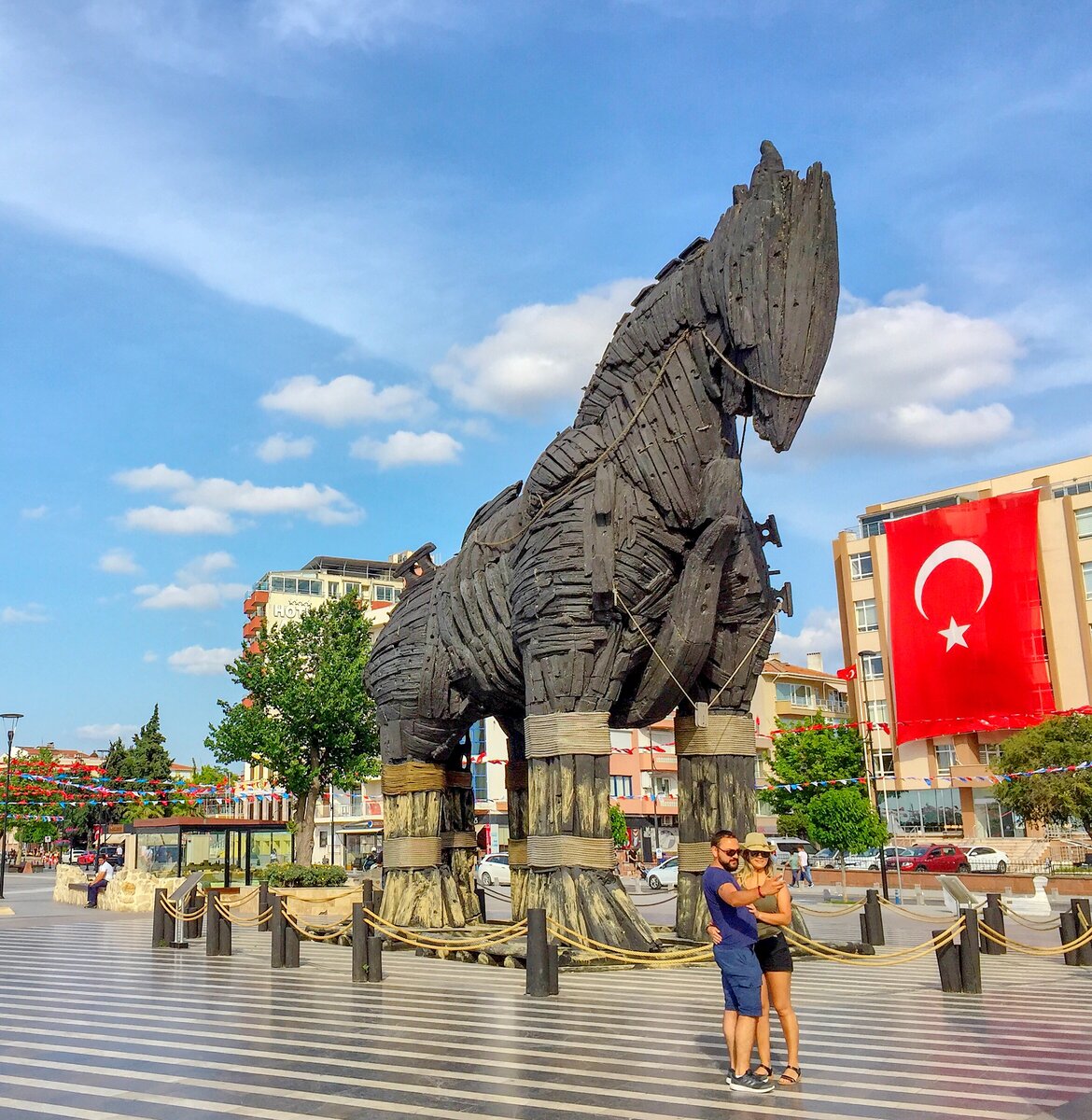На фото - тот самый взаправдашний конь, который снимался в фильме "Троя" (который с Брэдом Питтом). Голливуд подарил его городу Чанаккале и теперь он стоит там на набережной, являясь одной из множества достопримечательностей этой местности. Чанаккале находится на побережье Турции, где встречаются Мраморное и Эгейское море. Имеет очень древнюю историю. Название "Чанаккале" происходит от турецкого "çanak"(горшок) и "kale" (крепость). Так... Но причем тут вообще Чанаккале, троянский конь и Голливуд? Дело в том, что совсем недалеко от Чанаккале, примерно в 25-ти км к югу, и находится то самое настоящее историческое место - Троя. Поэтому, после съемки эпичного фильма, было принято решение подарить эпичного коня - эпичному городу. Что касается настоящего троянского коня... был ли он - никто не знает. На его счет есть легенда и различные ее интерпретации. По дороге в Измир нельзя было не заехать в Трою. И какая она сейчас - в следующей публикации. А сейчас могу отметить, что те места - дей