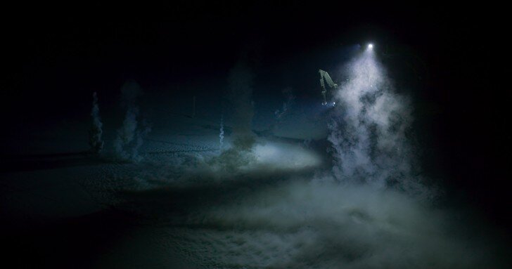 В нашем привычном понимание вулканы это огнедышащие горы, выбрасывающие на поверхность потоки раскаленной лавы. Но существует еще один вид вулканов - Грязевые. Они извергают на поверхность смесь различных газов и грязевую массу. Грязевые вулканы встречаются и в толще воды. Очевидцами извержения такого вулкана стала команда "Голубая планета", находившаяся в это время в экспедиции в Мексиканском заливе. "Это было необыкновенное зрелище - оно буквально захватило дух. Пустынная равнина вдруг превратилась в извергающееся морское дно..." поделилась продюсер Орла Доэрти своими чувствами. На поверхность вырывались пузырьки метана. Некоторые достигали размера баскетбольного мяча. Такие "взрывы" происходят периодически, когда создается давление в глубинах дна океана. А вулкан служит выпускным клапаном, как у скороварки.