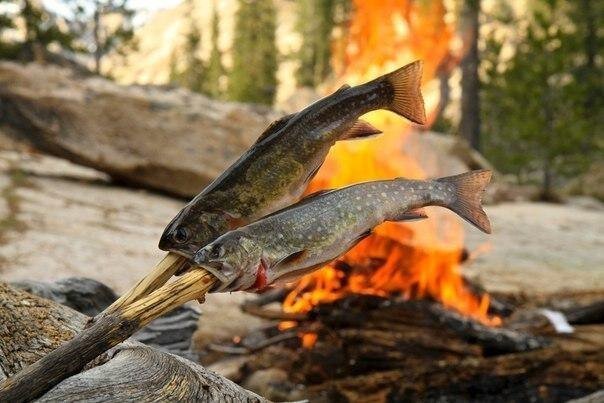 Рыбу, да и другие продукты можно приготовить на открытом огне примитивным способом и с помощью минимальных средств, получив, тем не менее, вкусное блюдо. Самой вкусной получается рыба, приготовленная на углях костра. Жаренная над открытым огнем рыба или мясо – это здоровая вкусная пища. Лучшие вкусовые качества рыбы можно сохранить, поджарив ее на костре используя