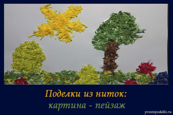 Совсем недавно мы научились делать кита из пластилина и бумажный кораблик. А сегодня мы с Вами научимся рисовать необычную картину - пейзаж. Чем рисовать, вы спросите? Наверное, красками? Что же тут необычного?И будете неправы. Рисовать мы с вами будем тем, что есть дома у каждой рукодельницы. Мы сделаем необычный пейзаж из ниток. Нам понадобится: Этапы изготовления: Картина из ниток готова. При желании на пейзаж можно нанести еще растительности, облака, даже домик. Все в ваших руках и зависит от вашей фантазии. Этот пейзаж можно вставить в рамку соответствующего размера. Получится замечательный предмет украшения интерьера, например, для детской, сделанный своими руками. Особенно если вы сделали его вместе с ребенком.