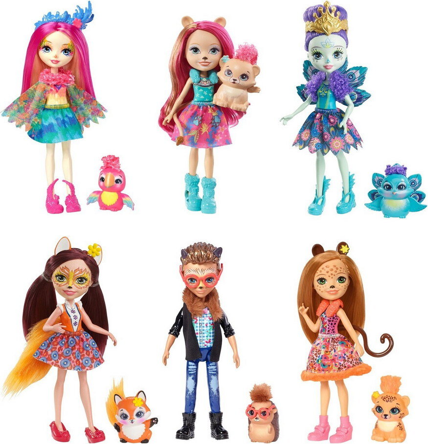 Пусть эти шесть очаровательных кукол и их друзья-животные очаруют вас: с ними вы получаете готовую коллекцию кукол мгновенно! Более того: встречайте новую героиню, куклу-льва Enchantimals! Итак, шесть кукол Natural Friends Collection: Каждая из шестидюймовых кукол (их высота около 15 см) носит знаковый наряд и обувь в стиле животного: с яркими цветами, цветочными принтами и пушистыми штрихами, а на головах стильные ушки! У друзей животных тоже есть свои собственные милые штрихи — например, цветочная деталь в волосах или мягкая пушистая текстура. Заботьтесь друг о друге! Разыграйте забавные истории с шестью любимыми куклами Enchantimals! В этой коллекции — павлин Patter Peacock и Flap, лиса Felicity Fox и Flick, гепард Cherish Cheetah и Quick-Quick, мальчик-ёжик Hixby Hedgehog и Pointer, попугай Peeki Parrot и Preeni, а также НОВАЯ ГЕРОИНЯ: кукла-львёнок со своим питомцем! Красивые волосы, звериные черты лица и уникальные акценты – крылья у павлина, лисьи уши у Фелисити Фокс,