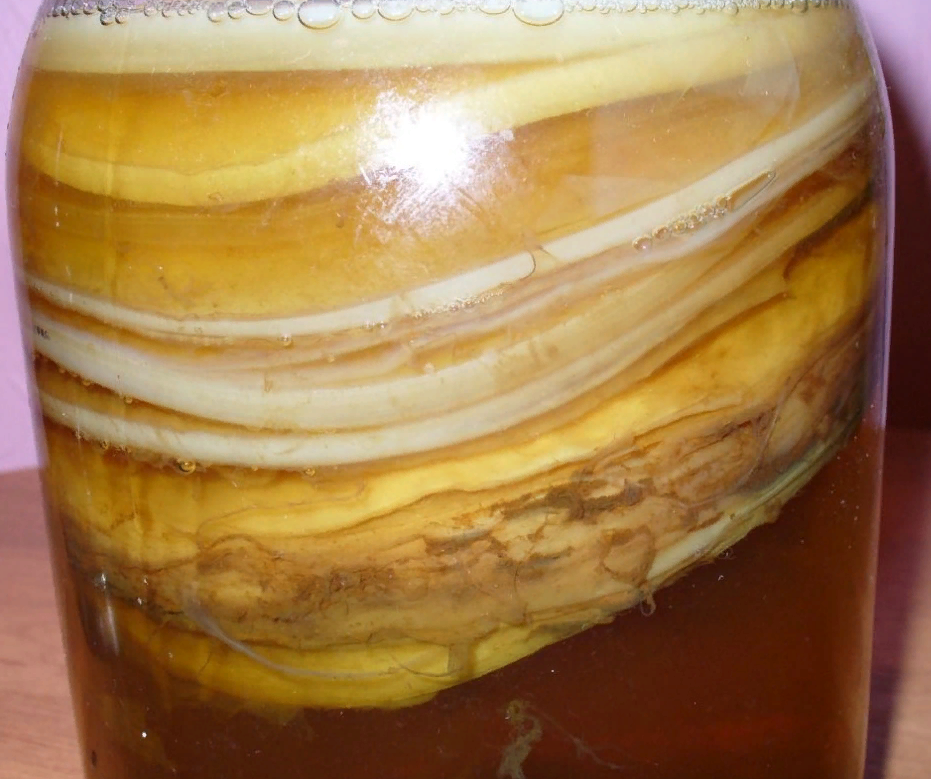В заварник кладут четыре чайных ложки чая и заливают 0,5 л. кипящей воды, дают ему завариться и остуживают. Затем насыпают 6 ст.л. сахара, размешивают и цедят через марлю. Готовый напиток наливают в емкость, куда помещен гриб, накрывают марлей и помещают в теплое место. Приблизительно спустя 10 суток появится кислый запах, как у уксуса – это обычное явление