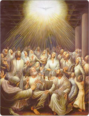 Деяния 2:1 При наступлении дня Пятидесятницы все они были единодушно вместе. 2 И внезапно сделался шум с неба, как бы от несущегося сильного ветра, и наполнил весь дом, где они находились. 3 И явились им разделяющиеся языки, как бы огненные, и почили по одному на каждом из них. 4 И исполнились все Духа Святого, и начали говорить на иных языках, как Дух давал им провещевать. 5 В Иерусалиме же находились Иудеи, люди набожные, из всякого народа под небом. 6 Когда сделался этот шум, собрался народ, и пришел в смятение, ибо каждый слышал их говорящих его наречием.
