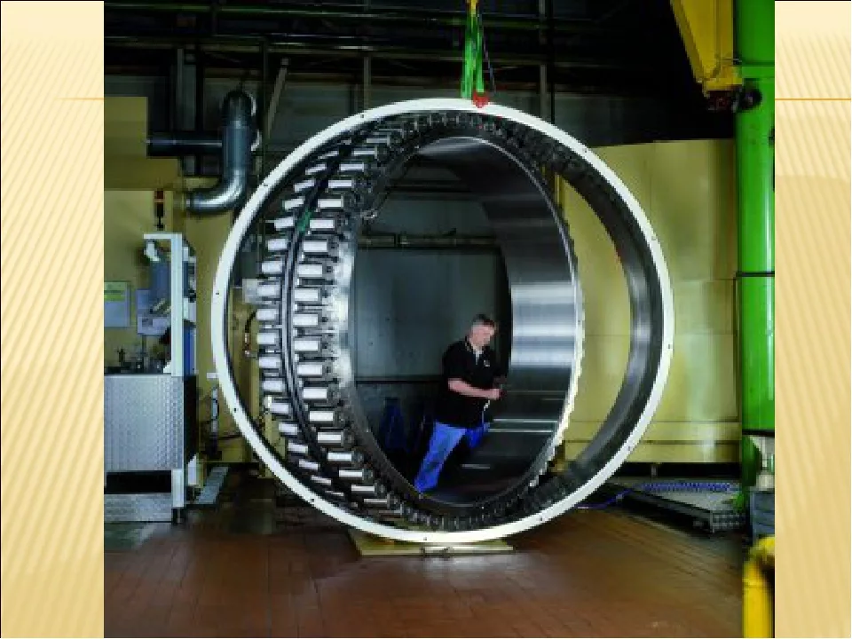 Во французском филиале шведской фирмы скф изготовлен подшипник, самый большой из числа когда либо выпущенных фирмой Его диаметр 6,9 метра , а толщина всего 14 см. Полуокружность подшипника размечено 340 роликов. На нем будет вращаться купол новой обсерватории, сооружаемой в Чили. Масса купола 280 тонн изготовили гарантируют отработку заданна го угла поворотливо всей длине окружности с точностью не менее 0.75 миллиметра, включая люфт зубчатой передачи.