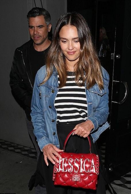Среди звездных модниц набирает популярность новый тренд — это ярко-красная сумка Valentino с нанесенным на нее именем владелицы. Такой яркий аксессуар разнообразит любой образ в стиле casual, что и доказала Джессика Альба, когда ей удалось выделить время в своем плотном графике время на свидание с собственным супругом Кэшем Уорреном. Для свидания с мужем Джессика выбрала маринерку и женственную юбку-тюльпан. Этот дуэт актриса дополнила классической курткой из денима и черными лодочками с кокетливыми бантиками. Ярко-красная сумка стала достойным завершением образа Альбы. Интересно, что звезда практически полностью отказалась от макияжа, выделив цветом лишь губы, и от прически, просто уложив волосы небрежной волной на прямой пробор. Однако даже в таком простом наряде и без профессионального макияжа Альба выглядела восхитительно!