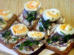 Не так давно довелось готовить закусочный стол. Сестра привезла приготовленную ею селедку. Когда я попробовала селедку, мне она показалась даже вкуснее соленой семги. И так рецепт соленой селедки: Готовим рассол: на 0,5 л воды - 3 ст.л. соли без горки; 3 ст.л сахара, специи: кориандр, лавровый лист. Кладем 2 крупных селедки (рассол должен покрыть селедки), оставляем на 1,5 - 2 дня для засолки и... Приятного аппетита! Попутно рецепт бутербродов, который можно приготовить с этой селедкой: 1 батон 100 гр сливочного масла 2-3 яйца филе 2-х селедок зеленый лук (по вкусу). С батона срезать все корки, обровнять края, чтобы получился как бы прямоугольный брусок, разрезать по горизонтали на 3 пласта, смазать тонким слоем сливочного масла, запечь до подрумянивания в духовке. Остывшие пласты снова смазать сливочным маслом. Один край каждого пласта посыпать рубленным зеленым луком, другой край выложить тонко порезанной полоской филе селедки, посередине - порезанные пласты яйца.