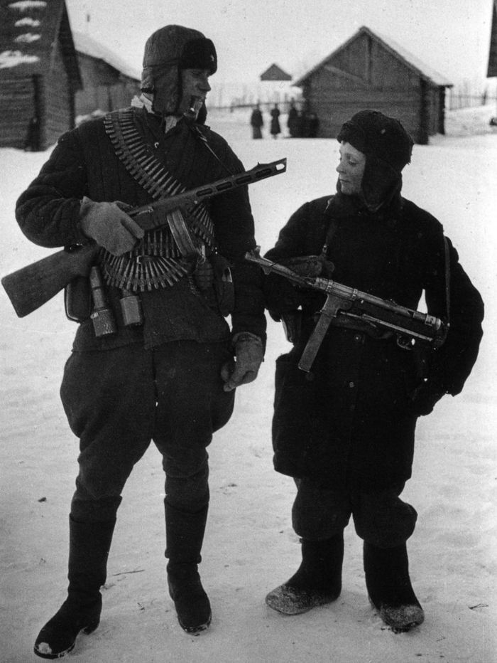 Два знаменитых образца оружия Великой Отечественной, два разных подхода к одной теме — немецкий МР.40, сконструированный конструктором Фольмером и зачастую ошибочно называемый "Шмайсером", и советский ППШ-41 конструкции Шпагина. Немецкий пистолет-пулемет создавался как оружие младшего комсостава, компактное и удобное в ношении. Советский — как оружие рядового пехотинца, призванное обеспечить значительный рост огневой мощи пехоты в ближнем бою. Немецких МР.40 выпустили около миллиона штук, советских ППШ-41 — шесть миллионов. Нужно отметить, что трофейное оружие весьма ценилось по обе стороны линии фронта. Немцам хронически не хватало своих пистолетов-пулеметов, и они охотно использовали захваченные пистолеты-пулеметы Шпагина как в родном калибре, так и перестволивая их под свой патрон 9х19 Люгер. Советские бойцы ценили МР.40 за компактность и его часто использовали разведчики и диверсионные группы, действовавшие в тылу врага