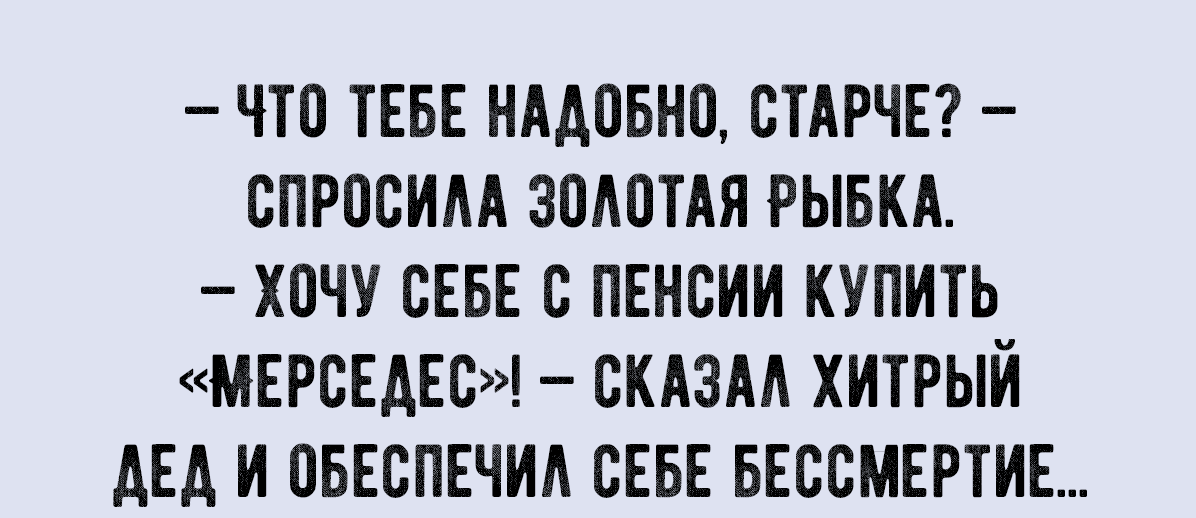 Клеется парень к шикарной блондинке: - А еще я высокий - 2 метра ростом! - Хм... Да? А на вид так 1 м 80 см... - Ага, но у меня еще 20 есть в другом месте! Два мужика пьют пиво: - Ваня, так это у тебя кризис среднего возраста. - Степа, а это как? - Ну как тебе сказать? Ну, это когда те, кто тебе нравятся, уже не дают, а те, кто даст, еще не нравятся!