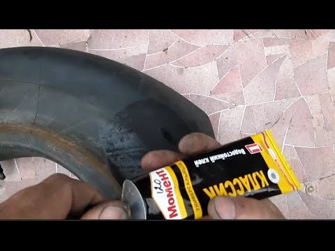 Прохудилась камера на колесе и я решил заклеить её клеем момент. Клею камеру клеем момент. Как клеить резину моментом.