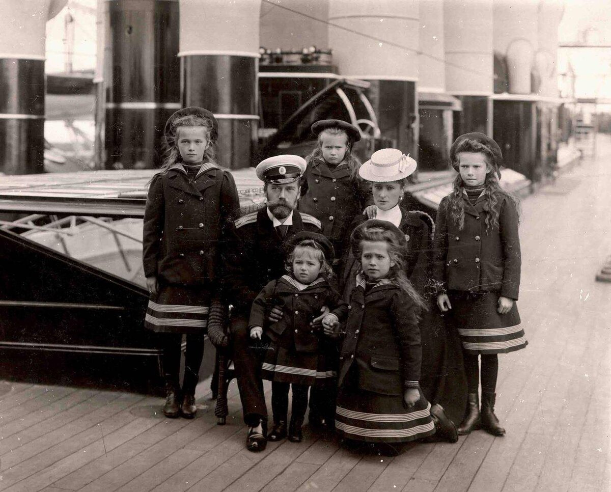 А как же жила семья во все эти годы? В целом, счастливо. Император, которому правление было в тягость, старался больше времени проводить с семьей. Они вместе катались на яхте "Штандарт", отдыхали в Ливадии, играли в теннис, фотографировались и ... следили за мальчиком, чтобы тот не упал или не ударился. Однако царские дети росли в строгих условиях. Николай и Александра постарались воспитать в них настоящих людей, что у них получилось. Дети жили весьма скромно, спали на солдатских кроватях и не имели никаких роскошных забав или вещичек. Их распорядок дня был строго регламентирован. Все получили блестящее образование, изучили все необходимые науки и три языка. Дочерям преподавались танцы, игра на рояле, гимнастика и естественные науки. А наследник, несмотря на то, что ему запрещалось с мальчишками бегать, купаться, драться и вообще вести обычную мальчишескую жизнь, учился быть императором. С началом Первой мировой войны Николай старался почаще (когда это позволяло состояние Алексея) брать его с собой в Ставку и на фронт.