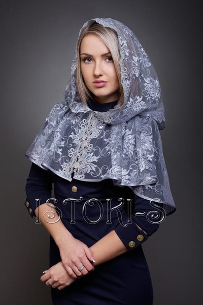 Серый платок Kora крестильный Серый платок Kora крестильный при взгляде на него вызывает такие эпитеты как нарядно, изысканно, роскошно, утонченно. Именно так и будет выглядеть крестная мама, которая приобретет и наденет в день таинства этот платок, выполненный из узорного гипюра с помощью серебристой шелковой нити, выкроенного так, что его каймовая часть обрамляет лицо, а остальные края платка отделаны серой атласной лентой. В качестве застежки у платка предусмотрена пуговица из большого кристалла Swarovski. Как одеться на крестины? Перед крестинами у любой крестной мамы возникает вопрос: как же одеться на крестины? Крестины — очень важное и светлое событие в жизни каждого верующего. Духовность и чистота этого ритуала обязывает появиться в стенах церкви одетым надлежащим образом, чтобы не чувствовать себя дискомфортно. Для крестин предпочтительно выбрать длинное платье или юбку и кофточку поскромнее. Цвета ткани не ядовито-кричащие и не цветастые. Лучше выбрать приглушенные светлые