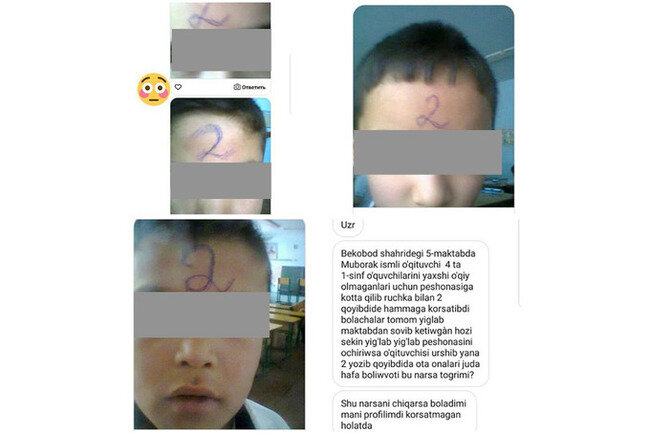 3 мая учительница начальных классов Бекабадской школы (Узбекистан) М. Хамидова нарисовала «двойки» на лбах четырех ребят из 1 класса «ж» за то, что они не выполнили домашнее задание. Узнав об этом, ее коллега С. Рахмонова, питающая неприязнь к Хамидовой, на следующий день позвала учеников к себе и вновь нарисовала «двойки» на их лбах. Сфотографировав ребят, она опубликовала фото в интернете и написала, что «двойки» были нарисованы Хамидовой. По итогам проверки уволены оба учителя.