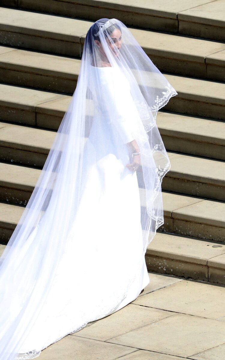 55 вышитых вручную цветка и 5 метров длины: все о фате Меган Маркл