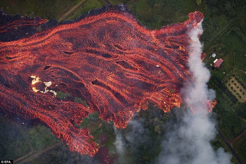 На Гавайях продолжает извергаться проснувшийся вулкан Килауэа, и теперь это райское местечко больше похоже на преисподнюю. Потоки раскаленной лавы "сожрали" уже десятки домов местных жителей. Людей эвакуируют по воздуху, раздают им противогазы - так как из-за выбросов газа, пепла и пыли просто нечем дышать. Предыдущее извержение в 1955 году продолжалось 88 дней, но, говорят, было не настолько мощным. Источник: i.dailymail.co.uk На сегодняшний момент вулкан извергается уже в течение двух недель и лавой покрыта территория более 325 гектаров. Источник: i.dailymail.co.uk Когда все это прекратится, никто предсказать не может. Источник: i.dailymail.co.uk Источник: i.dailymail.co.uk Из района бедствия эвакуировано уже более 2000 человек. Источник: i.dailymail.co.uk Источник: i.dailymail.co.uk Источник: i.dailymail.co.uk Источник: i.dailymail.co.uk Источник: i.dailymail.co.uk Источник: i.dailymail.co.uk Источник: https://fishki.net/2602915-ajerosemka-posledstvij-izverzhenija-vulkana-kila