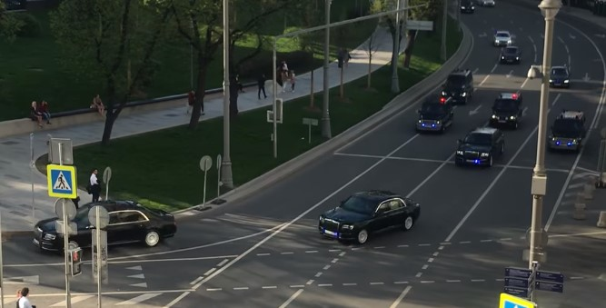 Президент России Владимир Путин покинул Кремль и начал свои путешествия по Москве на своем новом президентском лимузине, а также с обновленным эскортом из автомобилей. Несколько граждан мегаполиса засняли автомобили официальной колонны. В принципе, для водителей столицы Российской Федерации нет ничего странного, когда движение на нескольких улицах прекращается и проходят много автомобилей мигалками, в том числе длинный черный лимузин. Это знак того что президент перемещается по городу. В отличие от эскорта президента США Дональда Трампа, тот который сопровождает Владимира Путина, значительно меньше. Сначала есть два полицейских патрульных автомобиля, новый седан AURUS Сенат, один с мигалками, а другой без. В непосредственной близости и после лимузина также перемещаются три внедорожника Mercedes-Benz G-Class с удлиненной колесной базой, также бронированные, с задними дверями с боковым открыванием и черный микроавтобус VW. Позже ездят две BMW 7 серии с увеличенной колесной базой, микроав