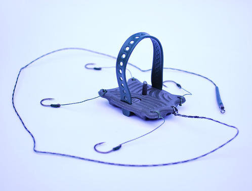 Обычно такое грузило имеет две разных плоскости. Одна совершенно гладкая, в то время как другая пупырчатая. С гладкой стороны мы крепим сам жмых, а пупырчатая служит нам для того, чтобы наша снасть надежно закрепилась на дне водоема. Обычно такое грузило применяют на стечении, т.к. оно хорошо держится на дне. Еще особенность в том, что нужно крепить максимум 2 крючка, чтобы на течении они между собой не перепутались.