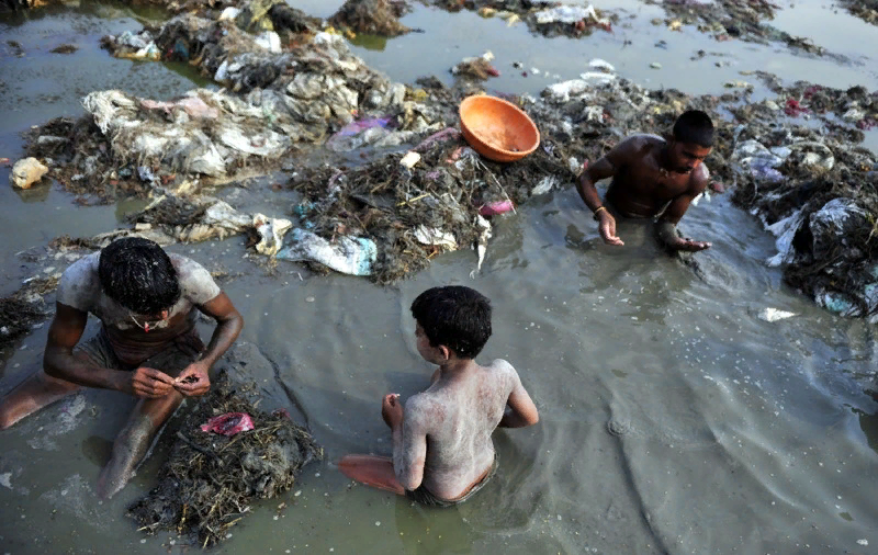 Река Ганг для Индии это ВСЁ! Она питает жизнью каждую травинку, каждый куст на своем не малом пути (2500 км). В Ганге обитает много редих растений и животных. А так же Ганг дарит жизнь около 500 миллионам людей! Ганг в индуистской мифологии — небесная река, которая спустилась на землю и стала рекой Ганг. С давних времён считается священной рекой для индуистов. Но несмотря на это Ганг самая загрязненная река в мире. От истоков, река чистая. Но дальше... Начиная с города Харидвар в индийском штате Уттаракханд, уже видны признаки начала беды . Индусы тысячами, ежедневно погружаются в воды реки, полагая, что это освобождает жизнь от грехов. В Канпуре, штат Уттар Прадеш, расположен на реке Ганг к югу от Лакхнау, видно уже что вода совсем грязная и непрозрачная. В Индии люди пьют воду из реки, моются и тут же стираются, используют для полива с/х культур. Дети, купающиеся в Ганге, регулярно лечатся от болезней ( дизентерия, холера и тяжелая диарея ) передающихся через воду. Город