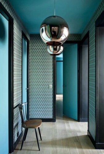 Добрый день дорогие друзья! Разве Вы не хотите, чтобы Ваш коридор был не просто темным, неудобным и утомительным переходом между комнатами? Безусловно, коридор - это ограниченное пространство с поступлением малого количества естественного света, но это не оправдание при подборе дизайна и его благоустройстве. Хочу напомнить, что стиль коридора может многое рассказать о нас! И по этому сегодня я подобрал 10 идей, которые помогут Вам украсить коридор и персонализировать его с помощью творческого подхода. Не только кухни, спальни, ванные комнаты или гостиные, но и коридоры заслуживают того, чтобы они были украшены со вкусом и стилем. И так, приступим! 1. Аномальный результат. Когда коридор – сочетание множества входов/переходов и направлений, чтобы придать уникальный аспект этому пространству, необходимо использовать однотипные модели подвесных светильников, к примеру «зеркальный шар», и повторяющуюся (однотипную) цветовую гамму. В этом случае образуется связующая нить между дверьми и сте