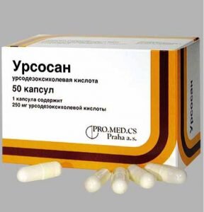 - Урсосан борется с аномалиями желчевыводящих путей, приобретенных или врожденных