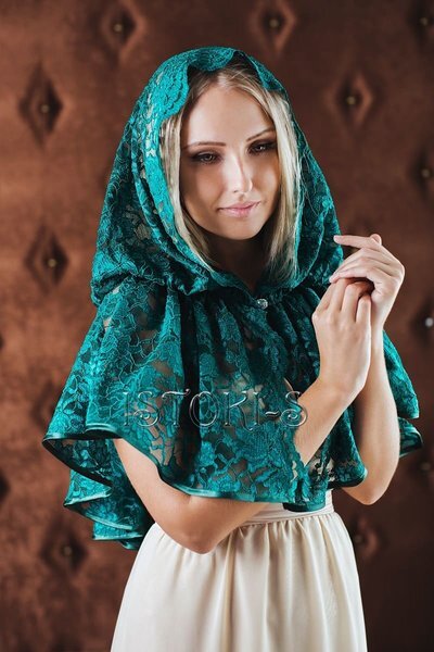 Зеленый платок Isolde на крещение Зеленый платок Isolde на крещение для крестной мамы выполнен из шелкового гипюра с нежной растительной фактурой, окаймляющий лицо оригинально выкроенной каймовой частью, окантован по остальным краям атласной косой бейкой в цвет платка и имеет застежку в виде большого кристалла Swarovski. Крестная мама в таком платке будет самой красивой в Божьем Храме. Можно ли одеть нарядный платок на крещение? Одеть нарядный платок на крещение, конечно можно, важно лишь учитывать возраст крещаемого и, конечно, традиции церковного храма. На таинства крещения и венчания особенно разрешено праздничное одеяние, которое может быть выражено лишь платком. Главное не переходить грань и не использовать кричащие цвета и вульгарные фасоны. Зеленый платок Isolde на крещение соответствует правилам и условиям посещения храма и выглядит очень торжественно. Наша лавка ускорит обладание таким платком в самые короткие сроки! ХАРАКТЕРИСТИКИАртикул: I-002