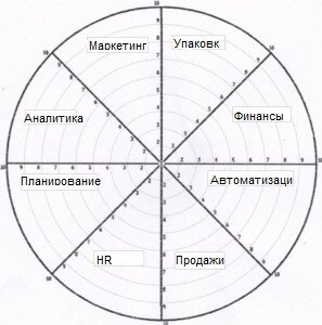 Выбираем по 8 пунктов профессиональных навыков и личностных качеств, оцениваем по 10 бальной шкале и строим колесо компетенций от 0 до 10. Где 0 это центр, 10 это максимальная точка радиуса. Соединяем все точки плавной линией и смотрим что за фигура получилась. Сможете ли вы ехать на таком колесе?