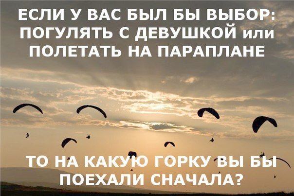 Ха, ха и еще раз - ха! Только если ты тоже парапланеристка. Если нет - забудь. Вообще забудь о совместных планах. Точный прогноз погоды будет известен в полночь перед стартом. Или в 6 утра перед ним же. Или заранее, но только если это очень плохой прогноз: ливень, ураган, метель. Тогда, конечно, можно и в город прогуляться.