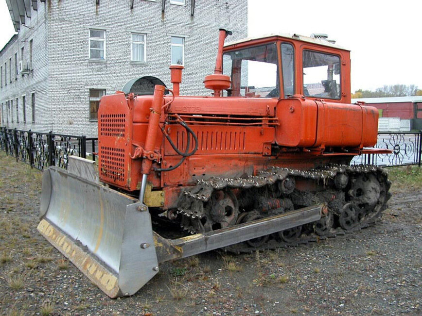 Продолжение. Читайте также Часть 1. Первоначально трактор был оборудован цельнометаллической кабиной закрытого автомобильного типа, унифицированной с кабиной автомобиля ГАЗ-51. Сиденье регулировалось по массе и росту водителя. У современного трактора ДТ-75 также полностью герметичная кабина, защищенная от вибрации и грохота. Предусмотрен воздухопровод для обогрева и вентилятор для охлаждения воздуха. Первоначально на тракторе устанавливался четырехцилиндровый четырехтактный дизельный двигатель СМД-14 жидкостного охлаждения Харьковского моторного завода «Серп и молот». Со всех сторон двигатель был закрыт капотом от влаги и грязи. Коробка передач механическая, четырехходовая, имеет семь передач и задний ход. В задний мост встроен планетарный поворотный механизм, а вся конструкция вместе с коробкой собрана в едином литом корпусе, что дало возможность сделать более жесткий каркас и обеспечить трансмиссии работу в более чистых условиях. В трансмиссию введен специальный механизм – преобразов