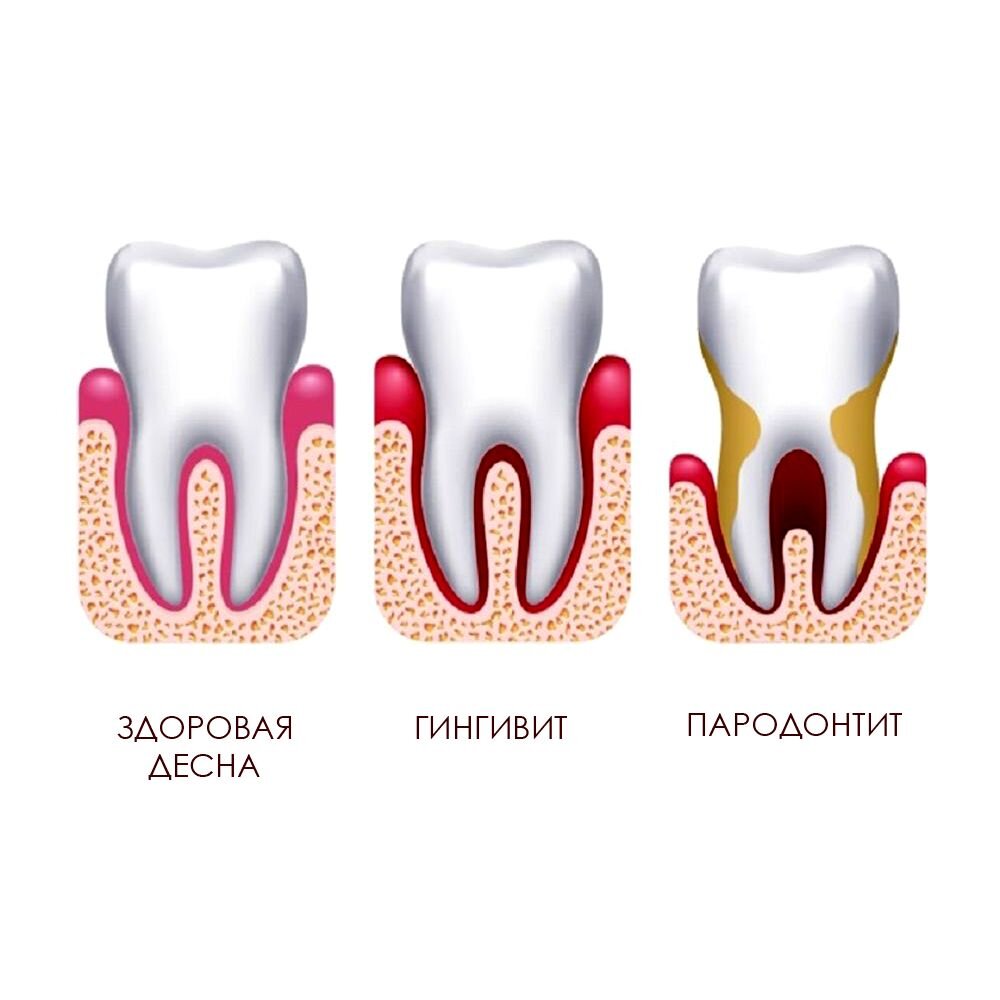 Если вы регулярно замечаете кровь на своей зубной щётке после её использования (по назначению, конечно же) - есть повод задуматься о приближающемся пародонтите. Что это значит? Пародонтит — это воспалительное заболевание тканей, окружающих зуб: десны, круговой связки зуба, костной лунки. При пародонтите десна кровоточит при практически любом воздействии - даже при пережёвывании пищи, - а в некоторых случаях постоянно. Поверхность приобретает синеватый оттенок, появляется ощущение зуда. Воспаление, как правило, зарождается на краю десны и распространяется на круговую связку зуба, а потом - на костную ткань челюсти, размягчая её и способствуя её деградации. Зуб становится относительно подвижным и смещается. Десна отслаивается и всё менее плотно прилегает к поверхности зуба. Между ними образуется "карман", где скапливаются остатки пищи, атакуемые бактериями и перерабатываемые ими практически беспрепятственно. Образуется гной, появляется неприятный запах изо рта. Далее десна уменьшается -