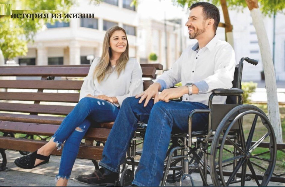 Обернулась и замерла. Передо мной стоял, точнее, сидел в инвалидной коляске привлекательный, я бы даже сказала, красивый мужчина. Стильная стрижка, модная легкая небритость,пронзительно-голубые глаза.