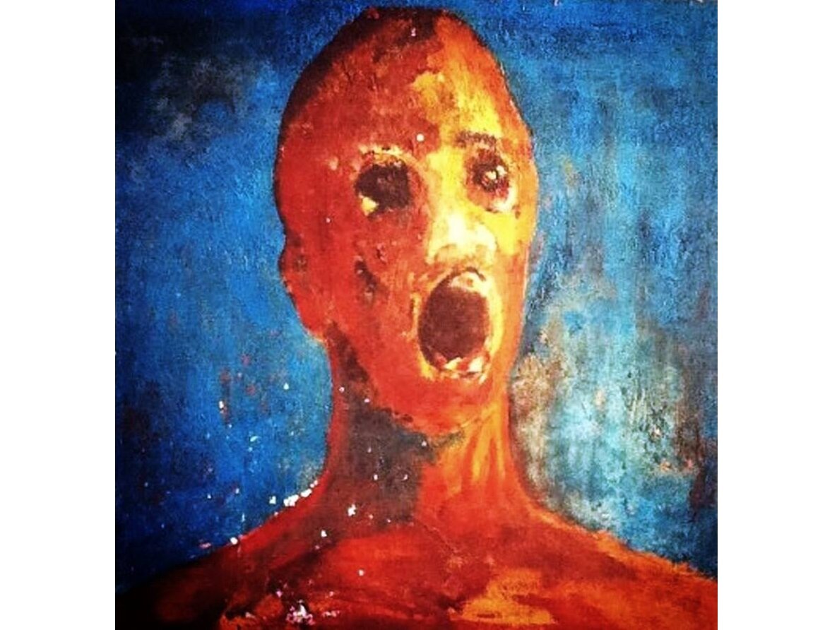 Вы, наверное, слышали выражение «сила искусства». Картина, о которой мы будем говорить выше яркий представитель, соответствующий этому высказыванию. Жуткая, окутанная множеством теорий и будоражащая своей историей, мы расскажем вам о картине «Человек в душевной муке». Знакомство с картиной у общественности началось с 2010 года, когда Шон Робинсон нашёл её в чердаке дома. Оказалось, что это вещь его бабушки, которая и оставила её там. От неё он узнал историю появления картины. По её словам, картина была написана около 26 лет назад, имя художника неизвестно. Женщина говорит, что после завершения картины неизвестный художник покончил с собой. Есть мнение, что в своей картине он частично использовал свою кровь и смешивал её с другими красками. Бабушка Сэма утверждает, что из-за картины она слышала шум и плач и видела чёрную фигуру, бродившую по её дому. Через несколько лет бабушка Сэма неожиданно умерла. Сэм забрал некоторые вещи к себе, в том числе и картину. Прошло не так много, как и