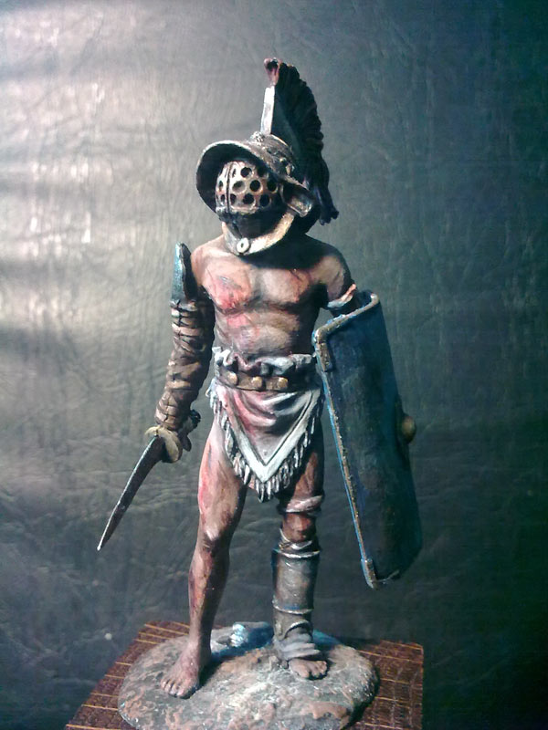 Но так было не всегда: к примеру, воины-самниты, которых империя завоевала только после тяжелых сражений, смотрелись очень красиво в своих блестящих шлемах с пышными султанами, в сверкающих доспехах, с очень красивыми щитами. Носили они небольшие прямым мечи, иногда — копья. Само собой, наличие этих «райских птиц» на боях притягивало большое внимание толпы. Организаторы состязаний старались удовлетворить ее запросы: они коллекционировали, хранили и при любой удобной ситуации пытались применять снова и снова особо экзотическое снаряжение и необычное оружие. Постепенно сформировались те общеизвестные виды гладиаторов, показываем