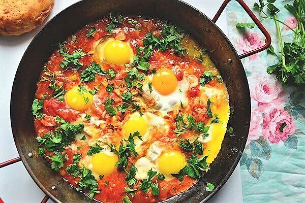 Шакшука Шакшука – отличное начало дня. Подается оно, как правило, с большим куском хлеба или лепешкой. Кстати, в Израиле такая «божественная яичница» уже давно является традиционным завтраком.В настоящее время встречается великое множество способов приготовления. В каждой семье шакшука своя: где-то острая, где-то не очень, с добавлением лука или без, может быть с густым соусом или с жидким, с твердыми желтками или как глазунья. Нередко повара добавляют кабачки и шпинат. Все продукты для шакшуки Вы легко сможете купить в ближайшем продуктовом магазине или на рынке. Ингредиенты: Перец сладкий 1 шт
